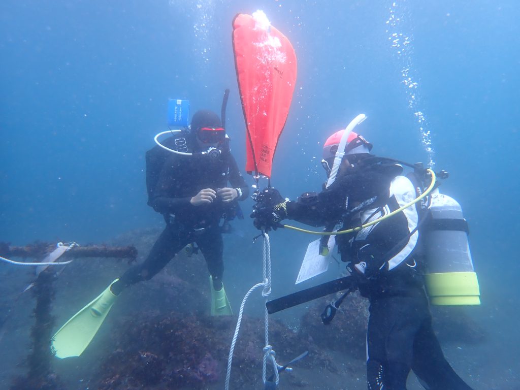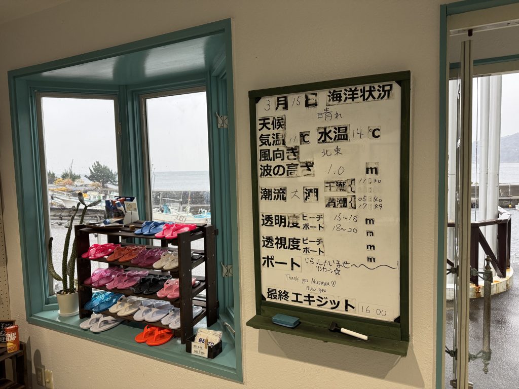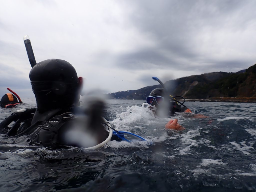 2025/03 IDC@赤沢 2025年3月15日 最終更新日時 : 2025年8月6日 凪~nagi~ 東風で荒れ荒れの寒空の中、オープンウォーターでのプレゼン練習やディスカバースクーバダイビング(体験ダイビング)の所作を学びました