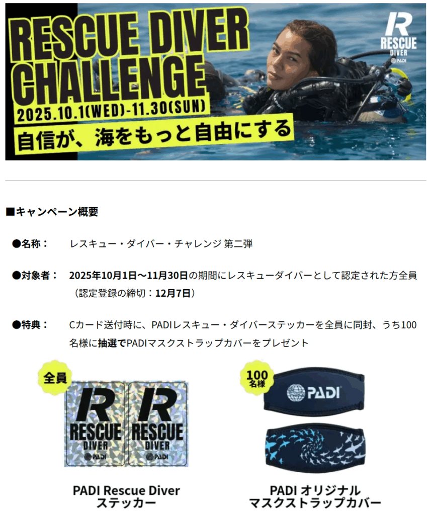 *2025/11/30まで『レスキュー・ダイバー・チャレンジ 第二弾』実施中です