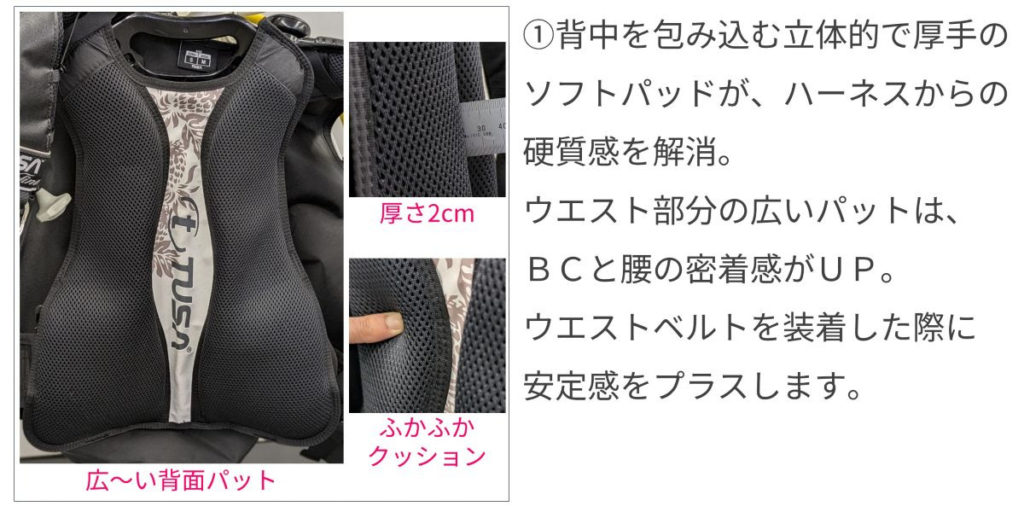 【女性ダイバーのためのBC Tina の3つのポイント】