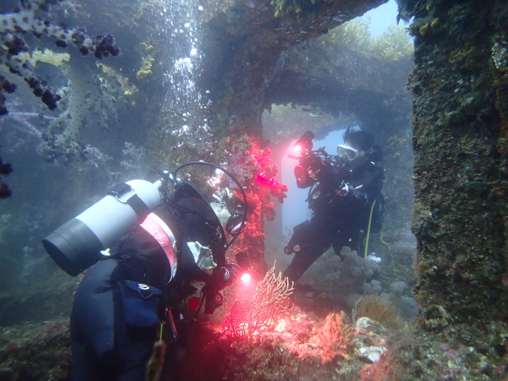 真夏のような日差しのなか、サウナ状態のドライスーツを装着し、