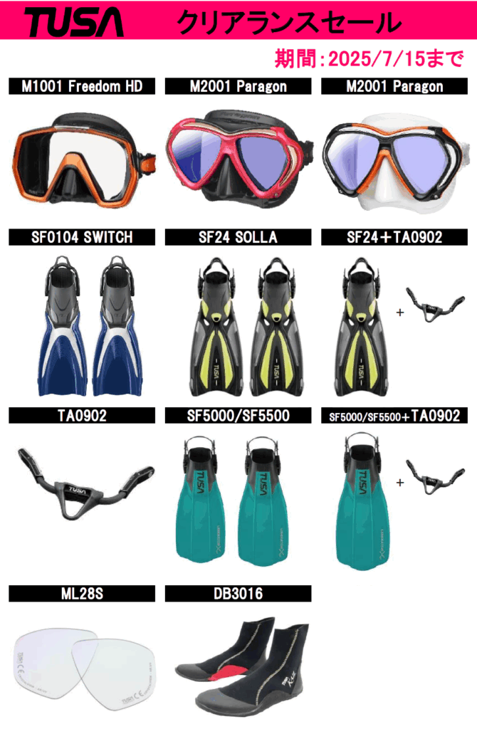 【~7/15】TUSAマスク・フィン・ブーツのクリアランスセール