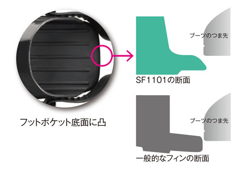 ②新開発のフィン専用ゴムを採用。