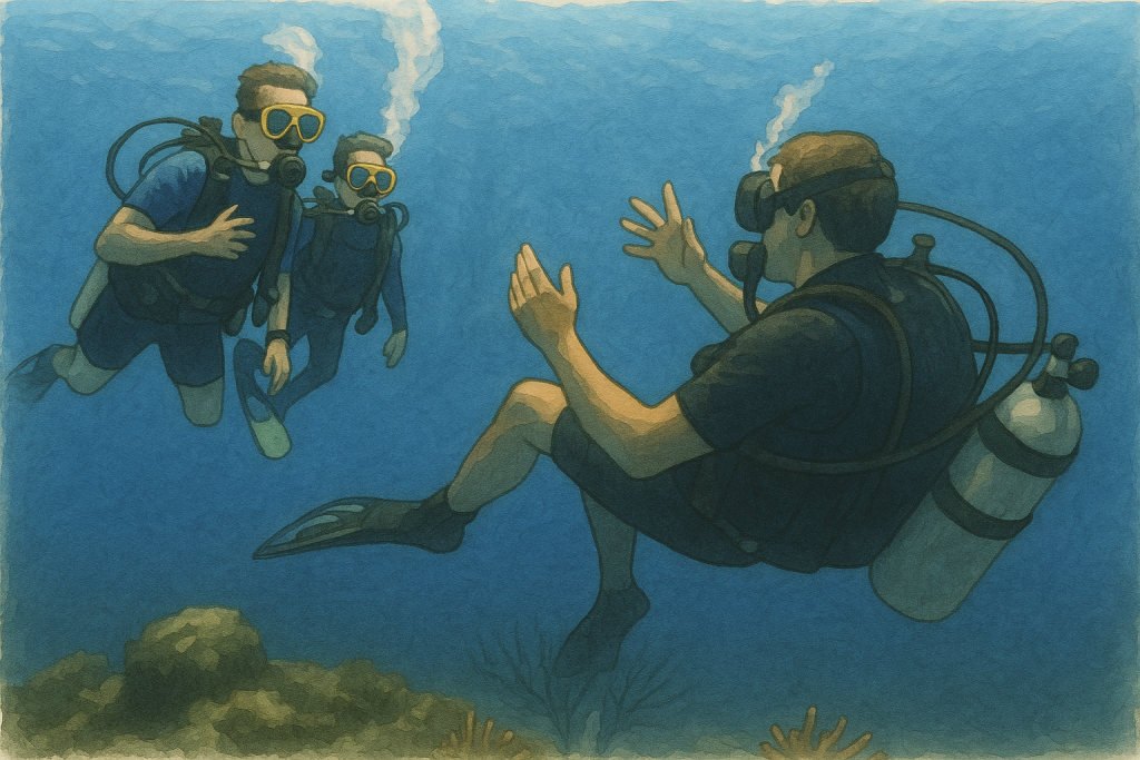 - オープンウォーターでのOpen Water Diverコースの生徒ダイバー