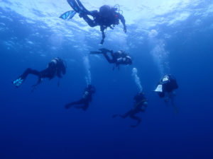 連日暖かく穏やかな海の中で、2日目は初めてのドリフトダイビングにチャレンジしました緊張気味でエントリーするも、しっかりとフリー潜降でき、楽しいドリフトデビューができました